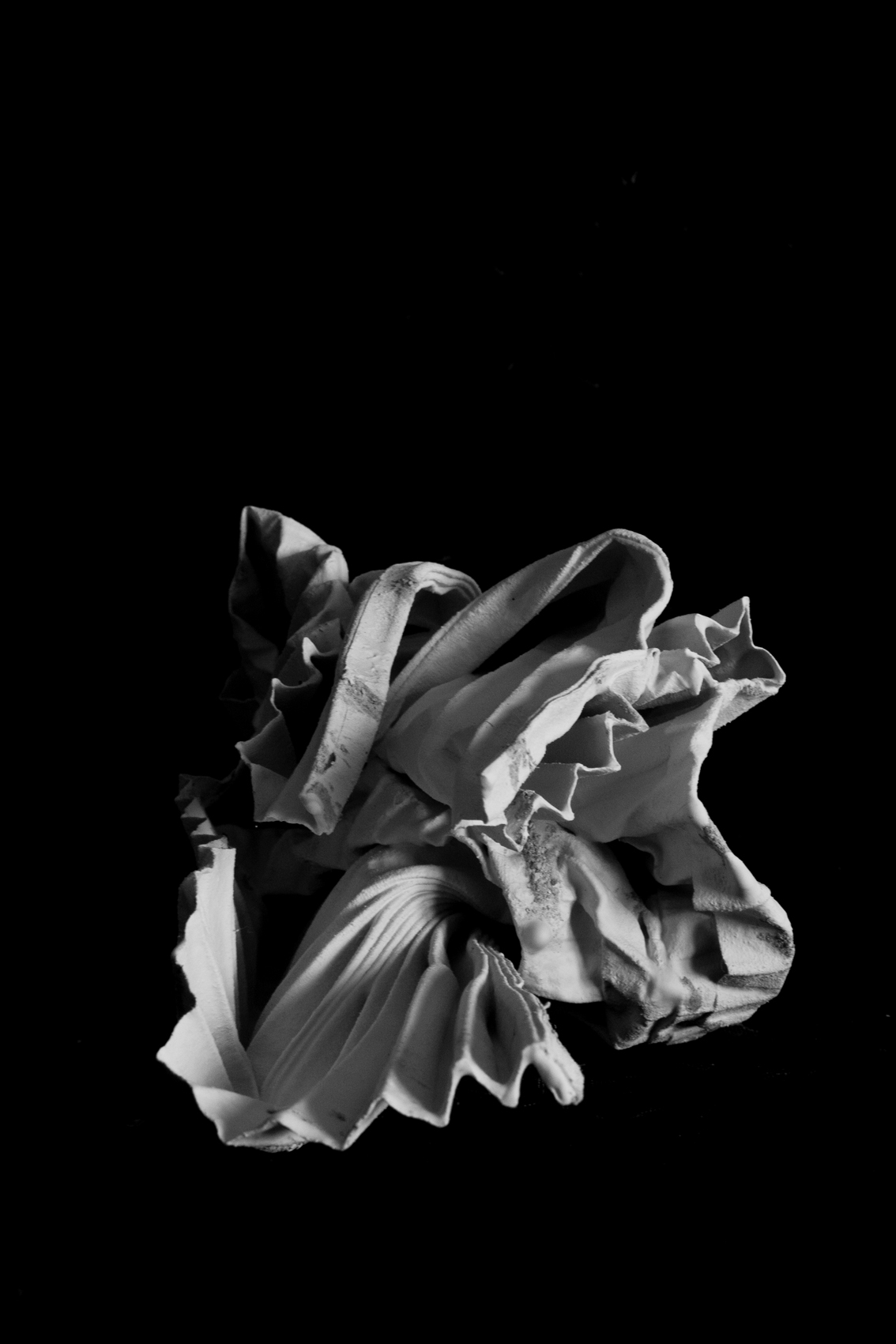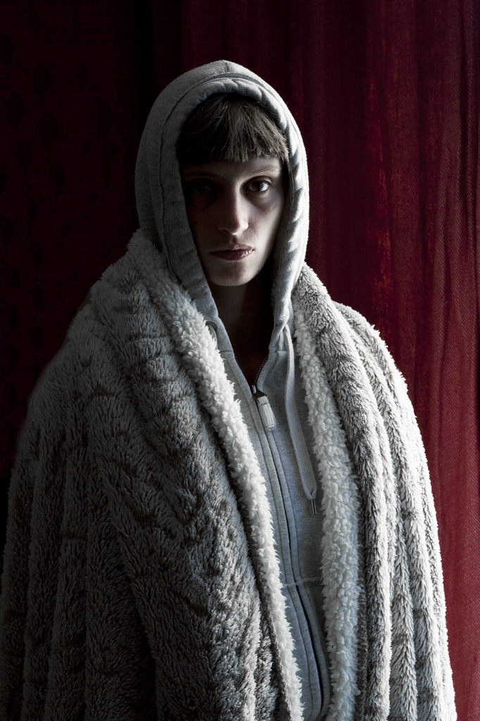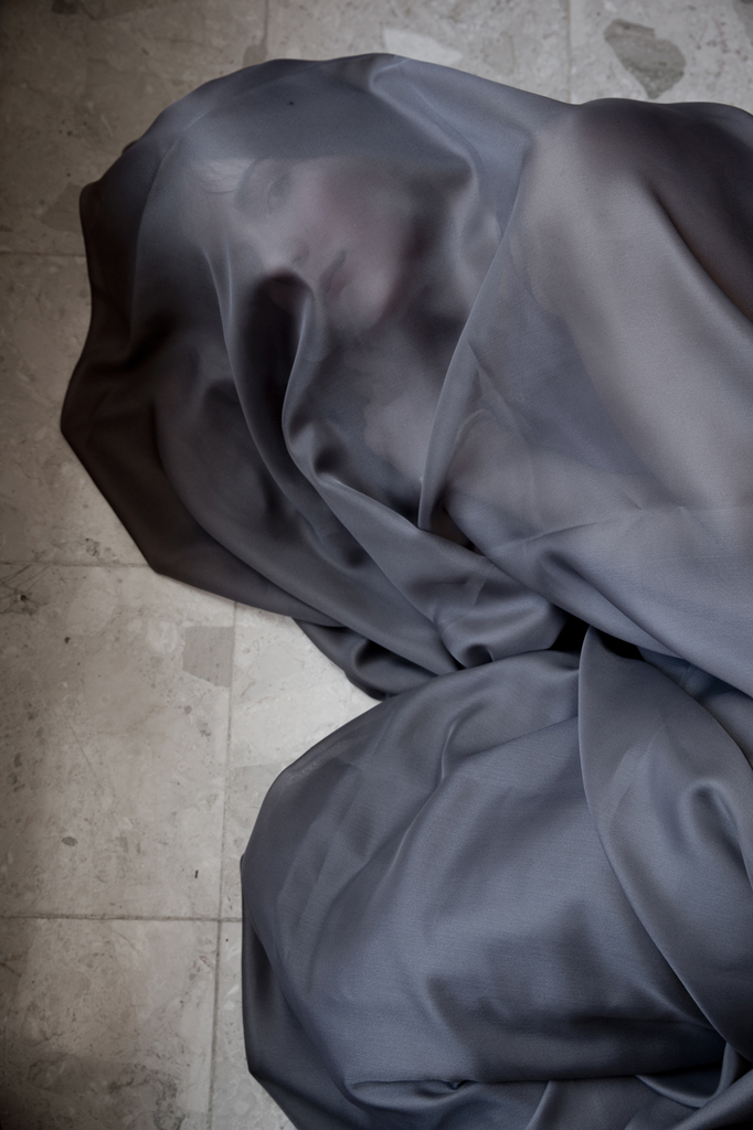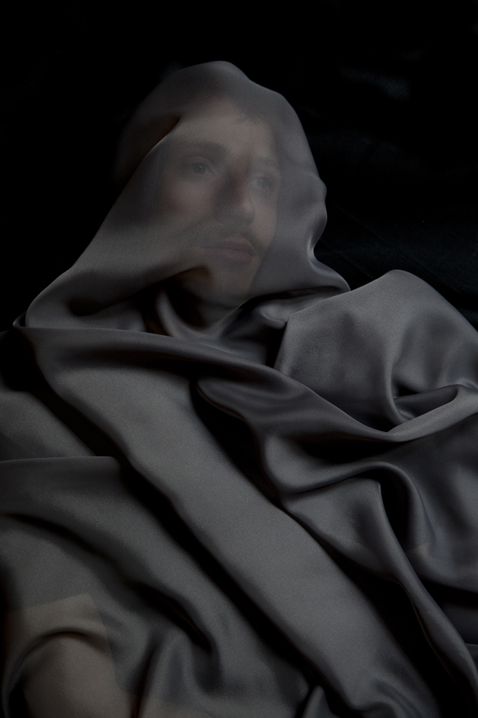 Ce dialogue entre le pli et le visage devient une zone de trouble, un interstice où l’identité se dérobe, se reformule. Drapés et textures se superposent à la peau, effacent et révèlent, provoquant un jeu d’apparition et de disparition, une oscillation du regard entre présence et absence.