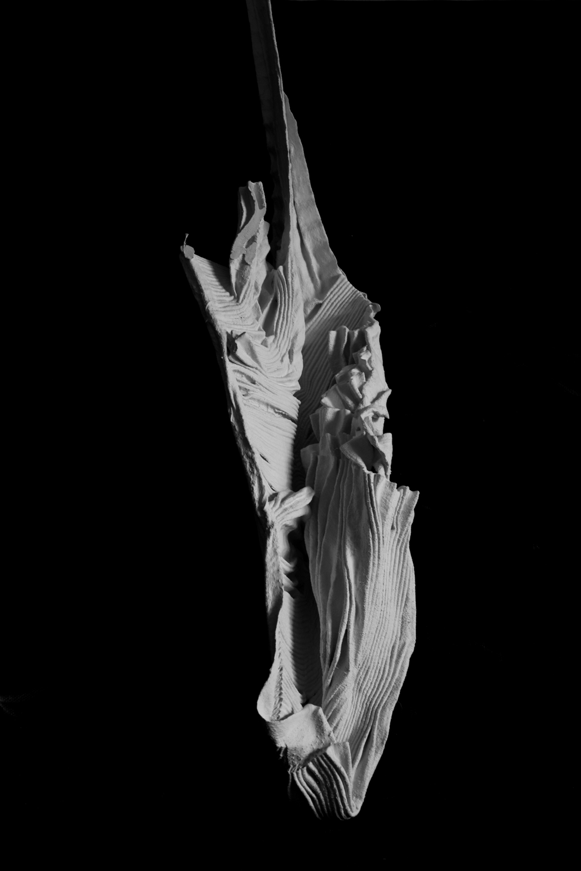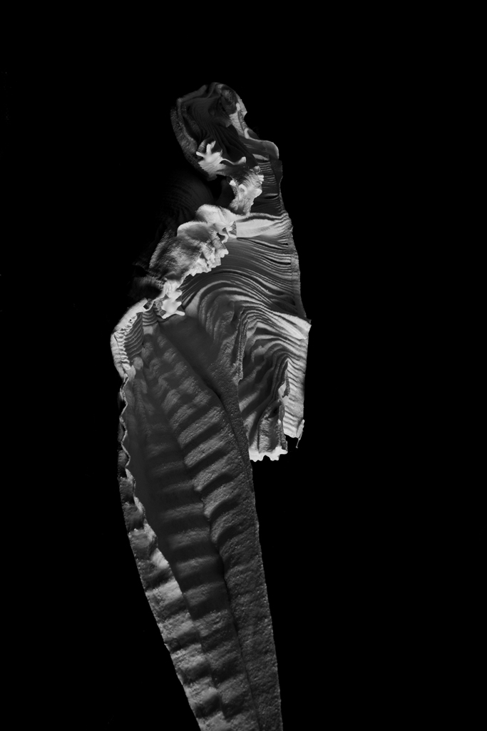 Dans cette série, j’ai introduit le pli comme matière vive du portrait. Le pli est flux, mouvement, vibration. Il n’est pas une simple répétition, mais la réitération infinie de la différence. Par son ondulation continue, il transforme le plan en volume, injecte le mouvement dans l’immobile, insuffle une respiration au figé.