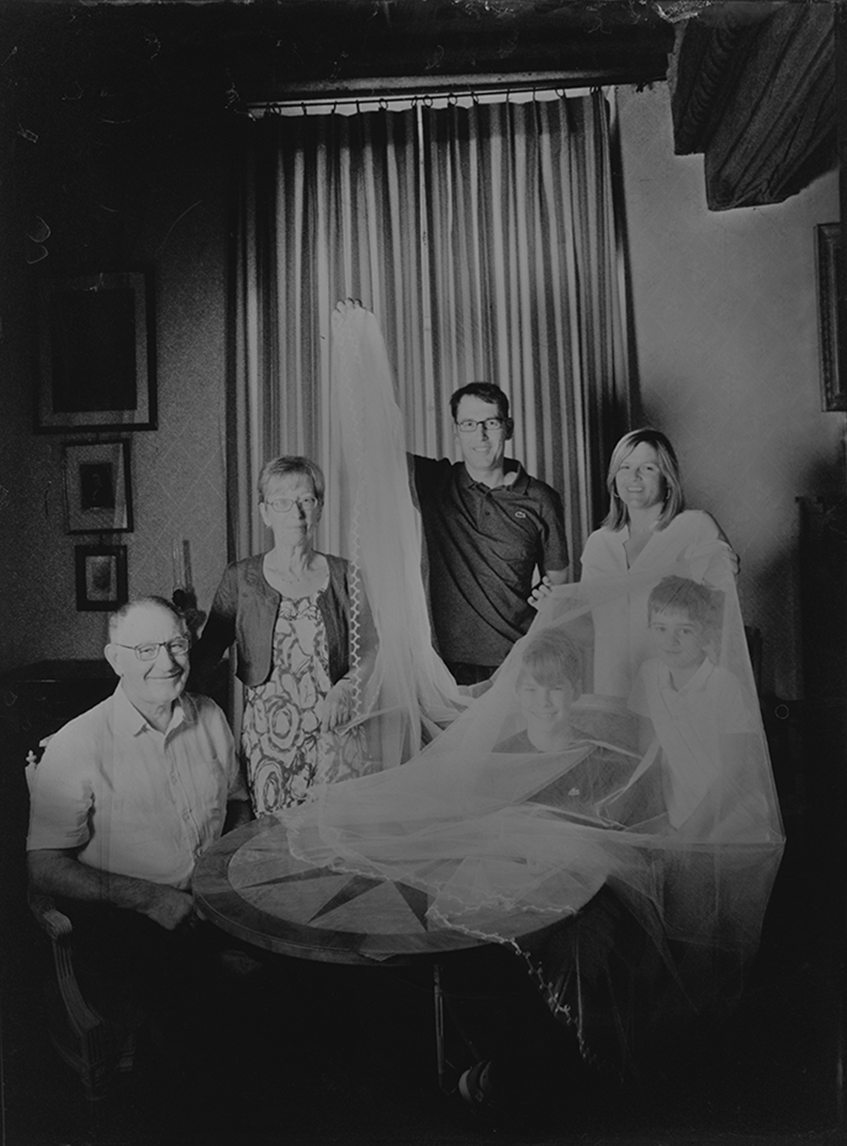 Le choix des techniques utilisées pour les portraits et les bouquets est pensé comme un aller-retour entre passé et présent ; entre la prise de vue en numérique et le collodion humide.