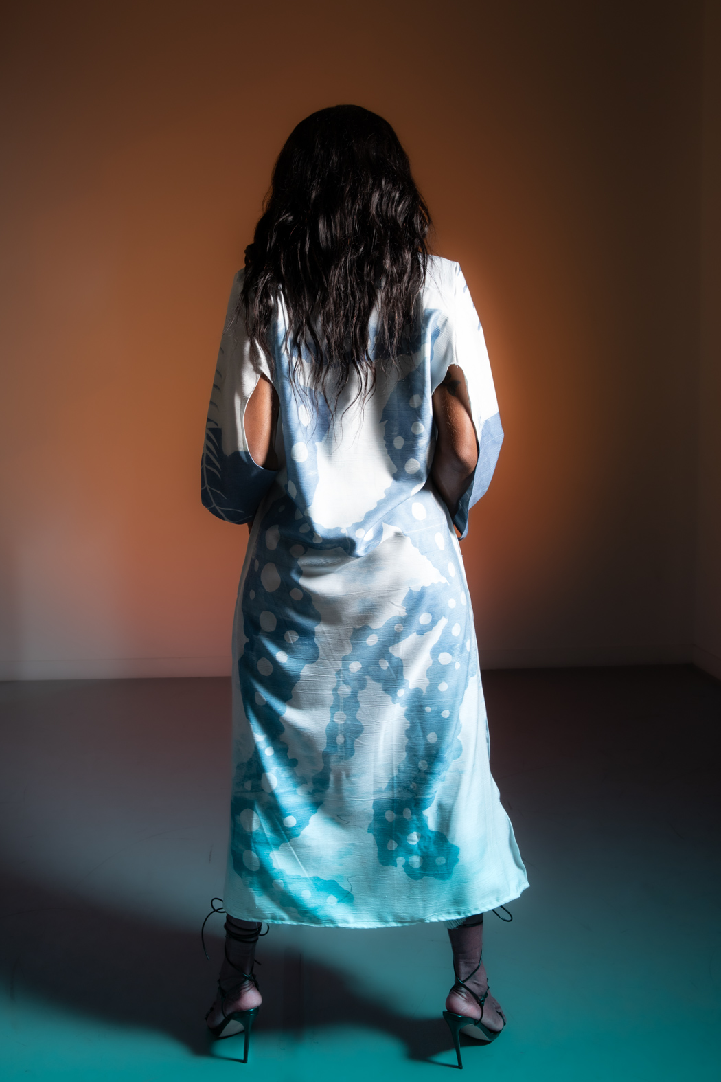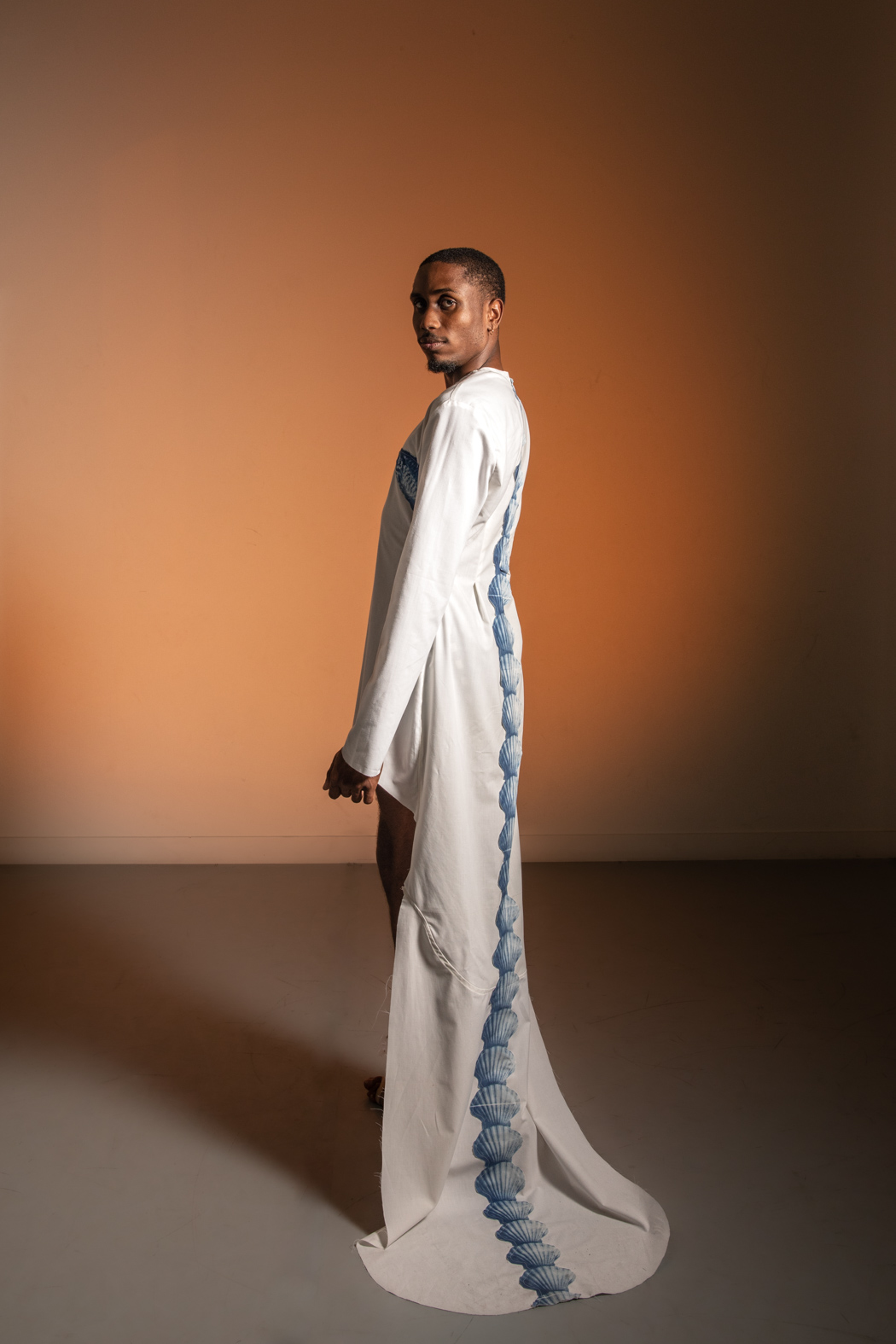 Invitée à la MPAA Bréguet de Paris, j’ai initié une expérimentation textile et photographique, un dialogue entre le geste et l’image, entre l’empreinte et le mouvement. Ce projet tisse un lien entre la photographie et le performatif : d’un côté, le cyanotype, cette technique photographique ancienne ; de l’autre, le voguing, art du corps en résonance, affirmation de soi, en partenariat avec la House of Mermaids.