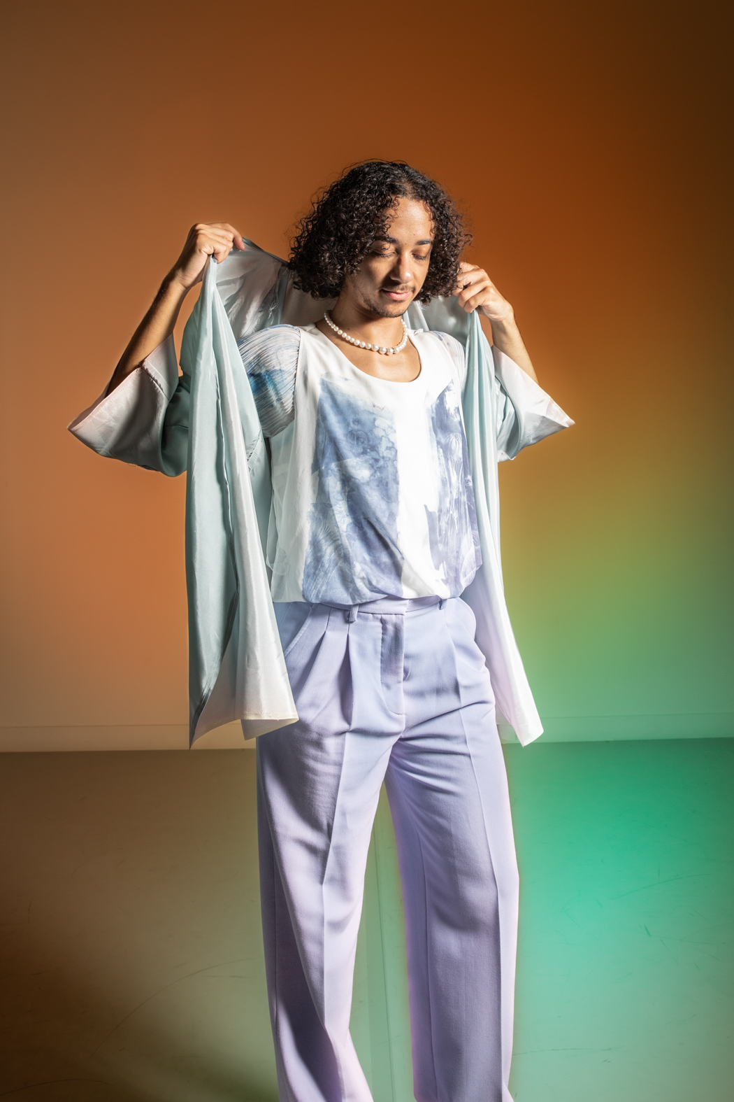 Des binômes photographes-voguers se sont formés, initiant un dialogue incessant entre image et corps. À travers des allers-retours entre prises de vue, réflexions sur le vêtement et créations cyanotypiques, la collaboration s’est tissée, vivante, organique.